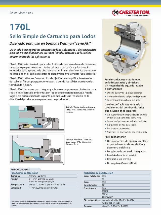 Product Datasheet: 170L Seal for Warman Pump (Español)