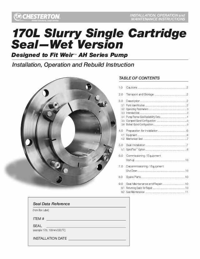 Installation Instructions: Chesterton 170L Wet Slurry Seal - Single Cartridge (English)
