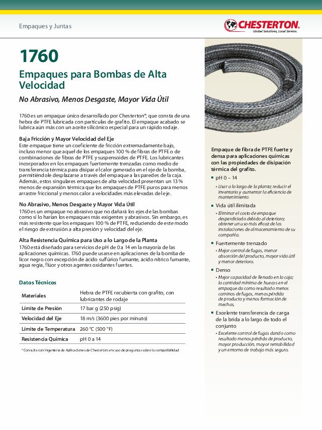 Product Datasheet: 1760 High Speed Pump Packing (Espanol)