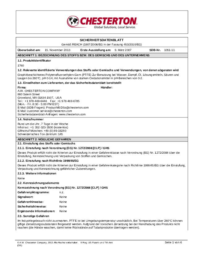 Product Datasheet: 1760 High Speed Pump Packing (Deutsch)